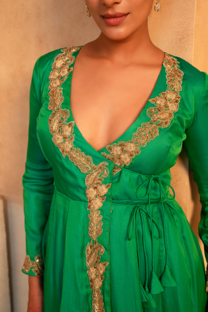 Shaded Hara Hara Kurta Set with Silk Pants and Organza Embroidery