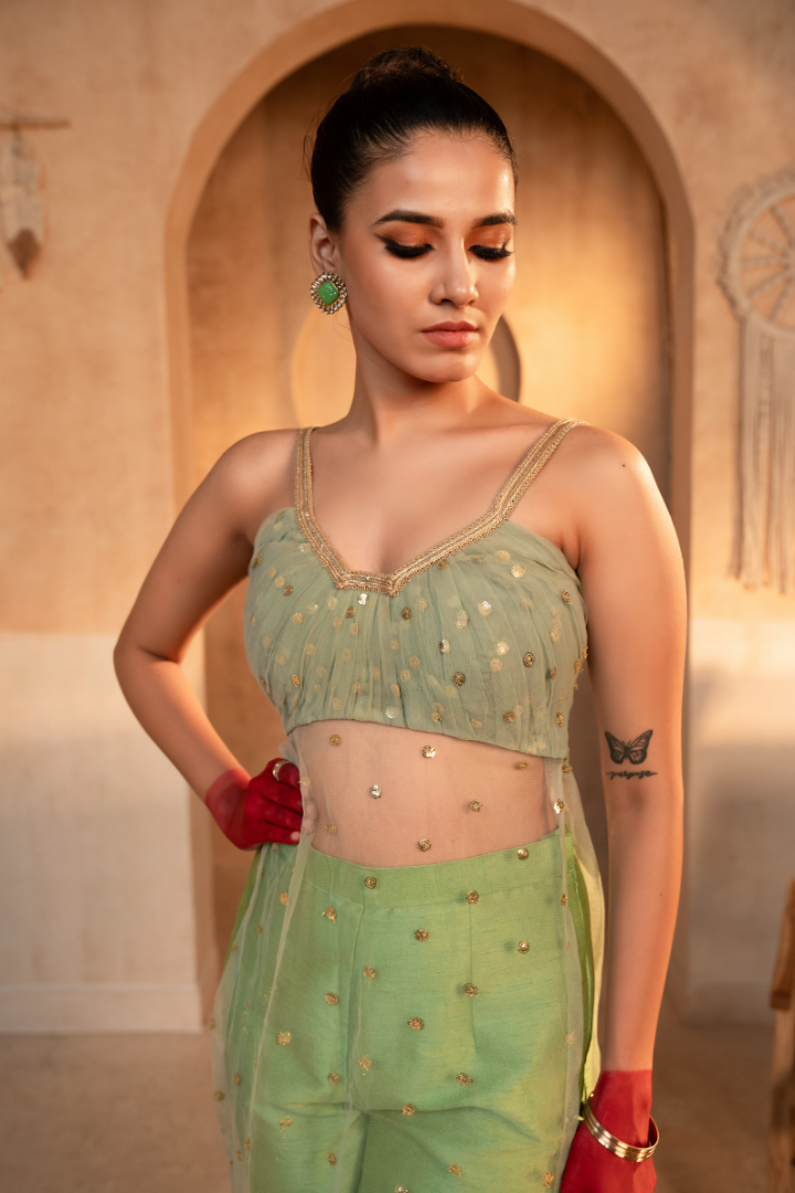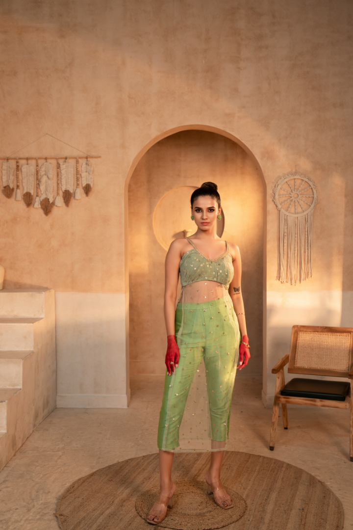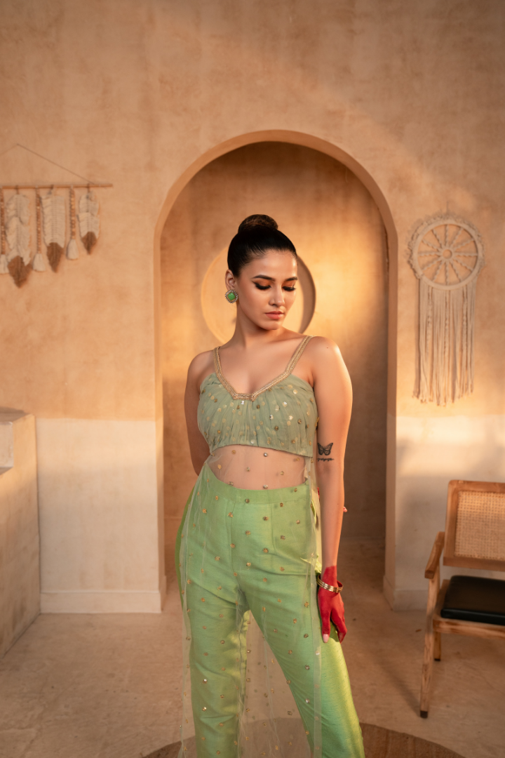 Embrace the elegant charm of the Tammanna - Elaichi Kurta Set. Crafted from a stunning blend of net and silk fabrics, this ensemble features a captivating hue that evokes a sense of refined sophistication. The kurta and pant set creates a harmonious look that effortlessly transitions from day to night. Whether you're attending a formal event or elevating your everyday ethnic wear, this Tammanna creation is a versatile choice that will make you feel truly confident and poised.