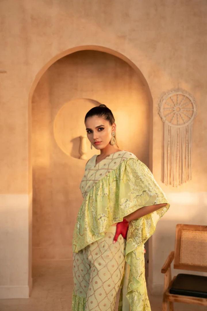 Tota Lime Green Kurta Sharara Set