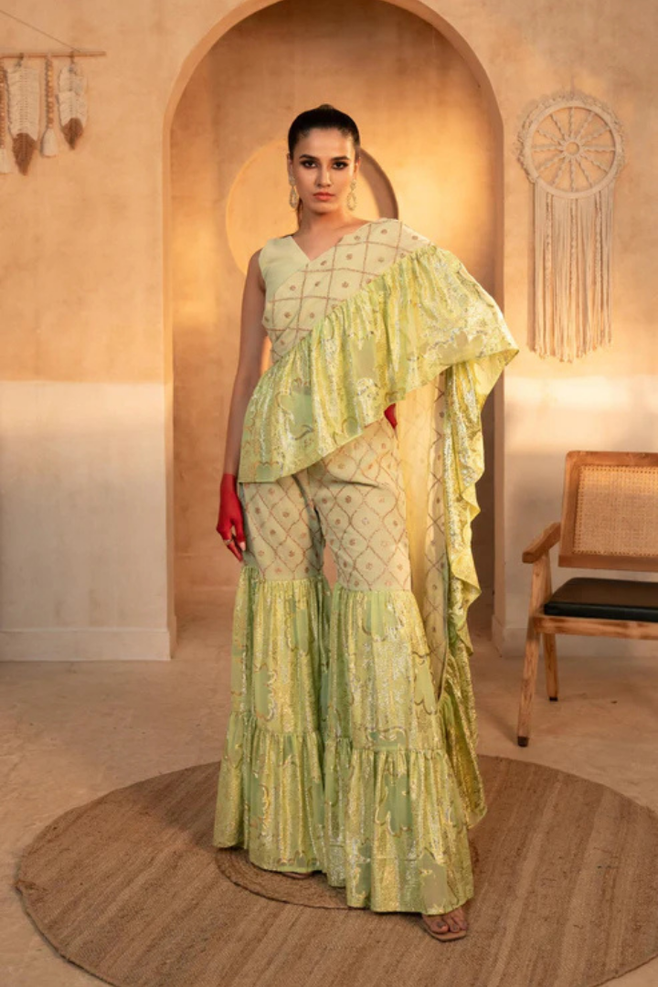 - Innovative saree-sharara fusion design
