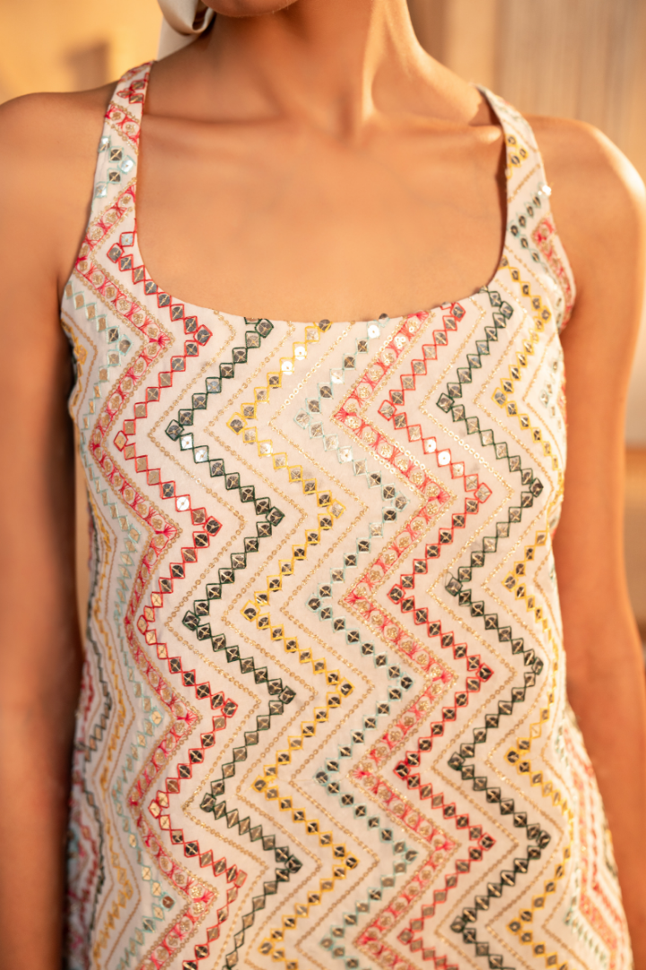 Shaded Hara Hara Kurta Set with Silk Pants and Organza Embroidery