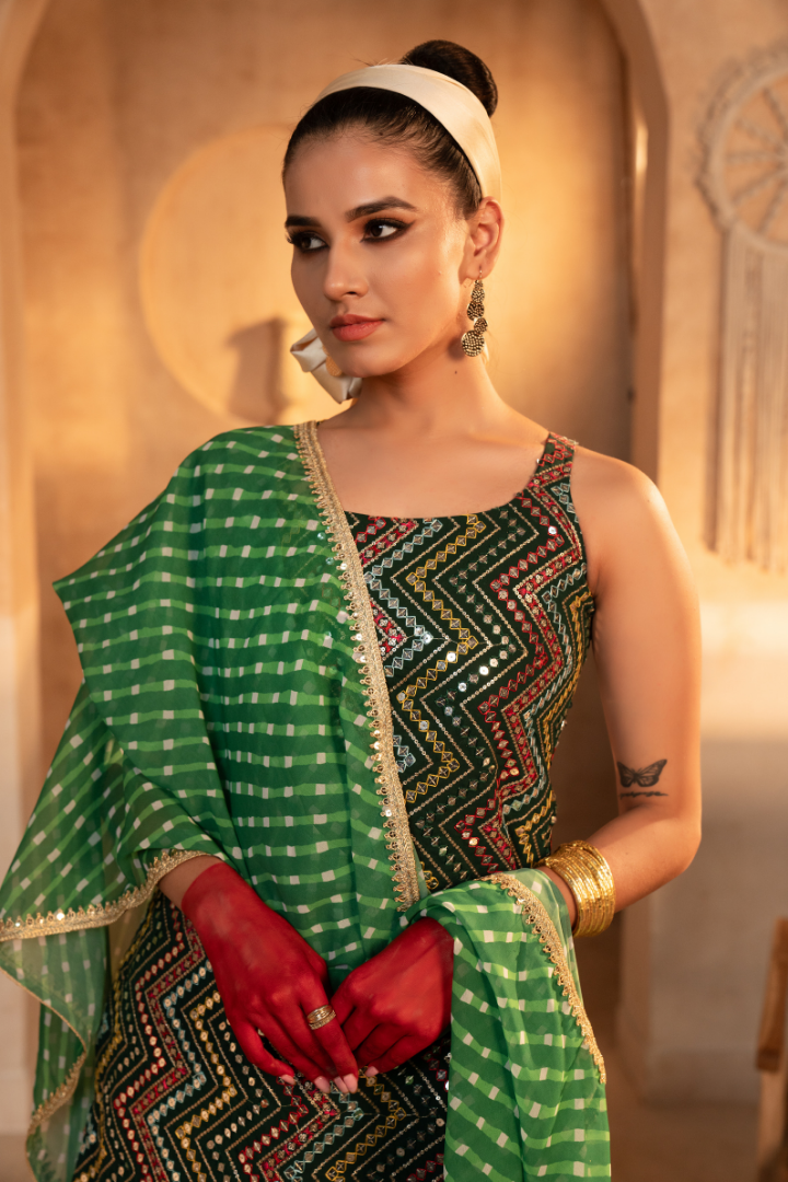 Shaded Hara Hara Kurta Set with Silk Pants and Organza Embroidery