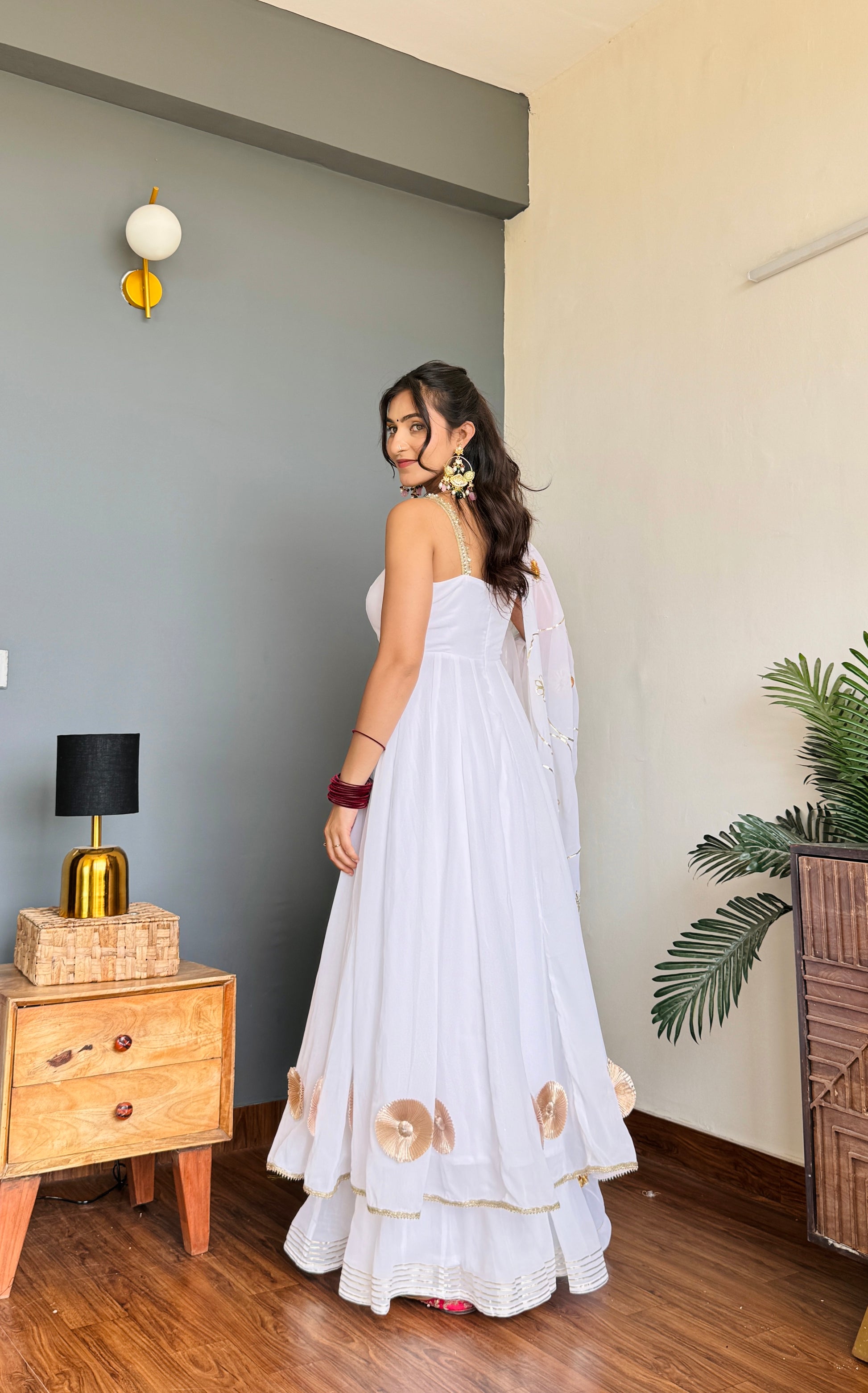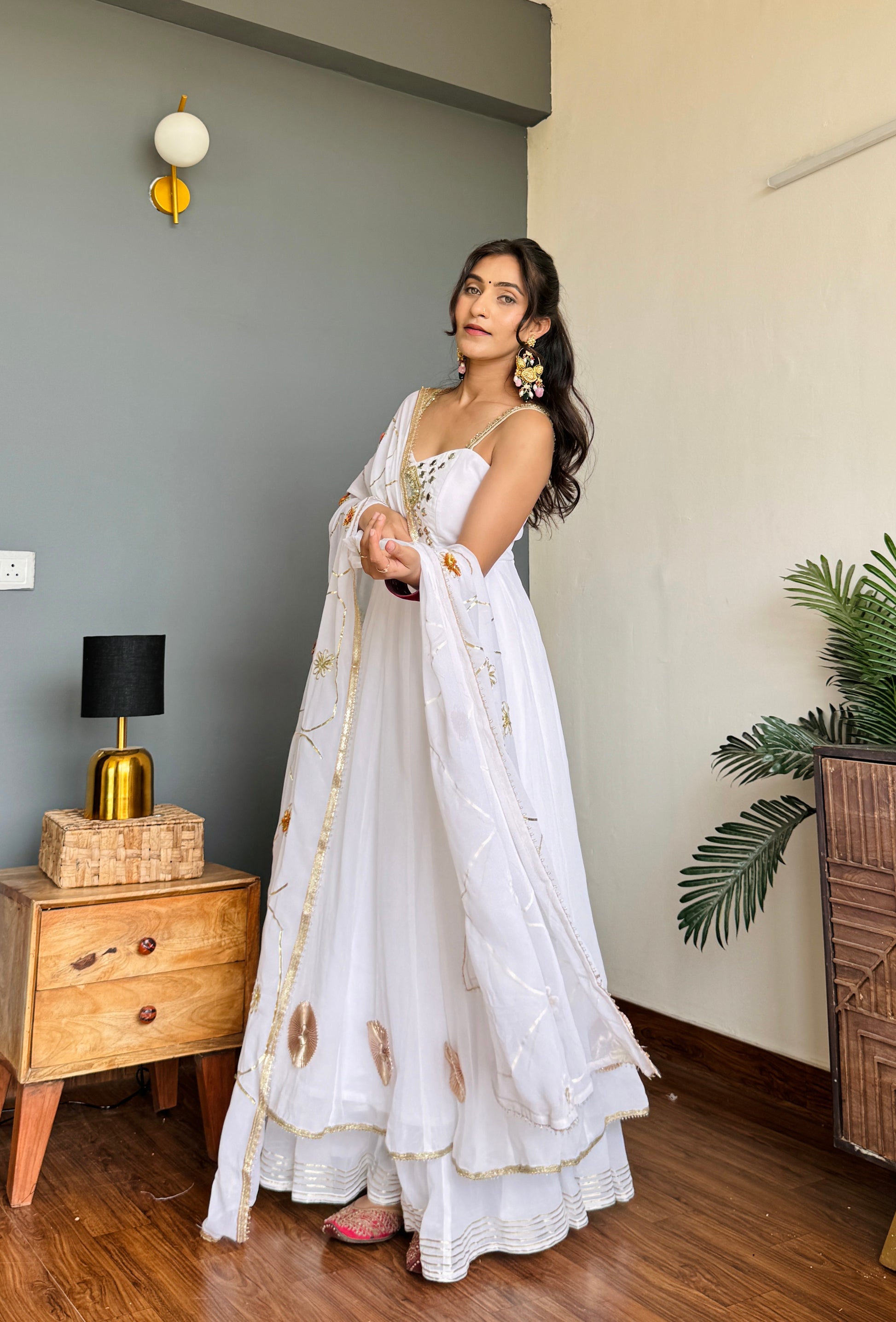 White-gold Anarkali in Mal cotton & Chanderi silk blend